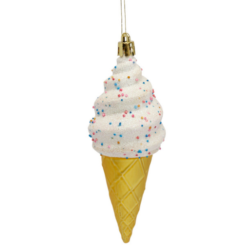 Voeg een speels en opvallend element toe aan je kerstdecoratie met deze unieke kersthanger in de vorm van een ijsje. De combinatie van een mat gouden afwerking met subtiele glitterdetails zorgt voor een verrassende mix van elegantie en fun. Met een lengte van circa 14 cm is deze hanger een echte blikvanger in de kerstboom, maar ook perfect geschikt voor decoratieve takken, kransen of feestelijke displays.
