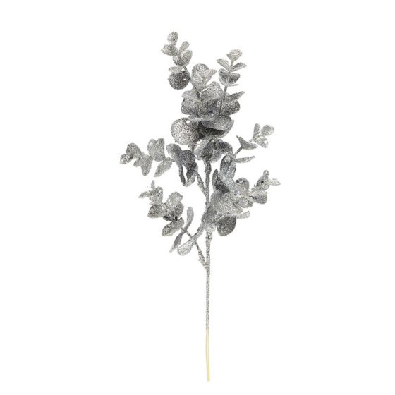 De zilveren kleur maakt deze tak bijzonder veelzijdig en eenvoudig te combineren met andere kerstdecoraties. Of je nu kiest voor een klassiek thema met wit en zilver, of juist een modern en minimalistisch interieur, deze eucalyptus pick sluit naadloos aan. De fijne details en lichte glitterlaag zorgen voor een mooie lichtreflectie, waardoor je decoratie extra opvalt zonder te overheersen.