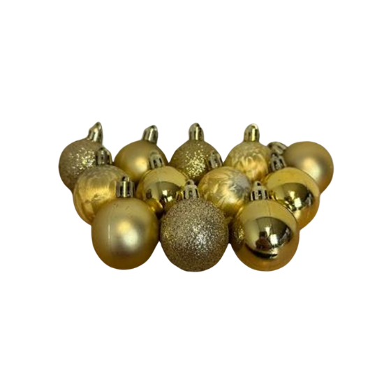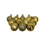 Geef je kerstboom een warme en luxe uitstraling met deze set van 12 gouden kerstballen. Deze stijlvolle set bestaat uit verschillende afwerkingen, waaronder hoogglans, mat, glitter en subtiele patronen. Door deze combinatie ontstaat een rijk en dynamisch geheel dat je kerstdecoratie direct naar een hoger niveau tilt. De warme goudtinten zorgen voor een klassieke en feestelijke sfeer die perfect past bij de gezelligheid van de feestdagen.