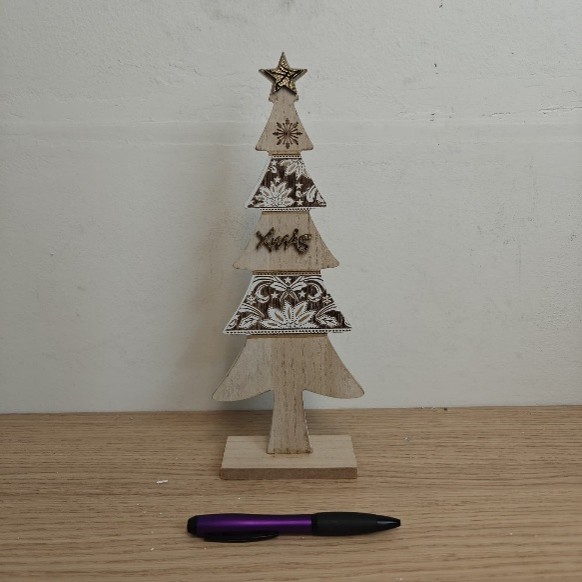 Deze decoratie leent zich uitstekend voor gebruik in huis, maar is ook zeer geschikt voor zakelijke omgevingen zoals etalages, balies of wachtruimtes. De houten kerstboom XMAS kan volledig naturel worden neergezet voor een minimalistische uitstraling, maar kan eveneens worden gecombineerd met andere winteritems zoals lichtslingers, kunstsneeuw of kleine accessoires voor een rijker geheel. Door zijn duurzame materiaal en tijdloze ontwerp is dit een decoratief item dat jaar na jaar opnieuw gebruikt kan worden tijdens de feestdagen. Het is een stijlvolle en praktische keuze voor iedereen die op zoek is naar compacte en sfeervolle kerstdecoratie.