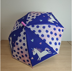 Met een formaat van 63 x 73 x 73 cm biedt deze paraplu ruime bescherming tegen regen, zodat kinderen droog blijven tijdens het lopen naar school, een wandeling of een dagje uit. Het gebogen handvat ligt prettig in de hand en maakt het eenvoudig om de paraplu vast te houden of mee te nemen. Hierdoor is de paraplu ook geschikt voor jongere kinderen die zelfstandig leren omgaan met hun eigen accessoires.